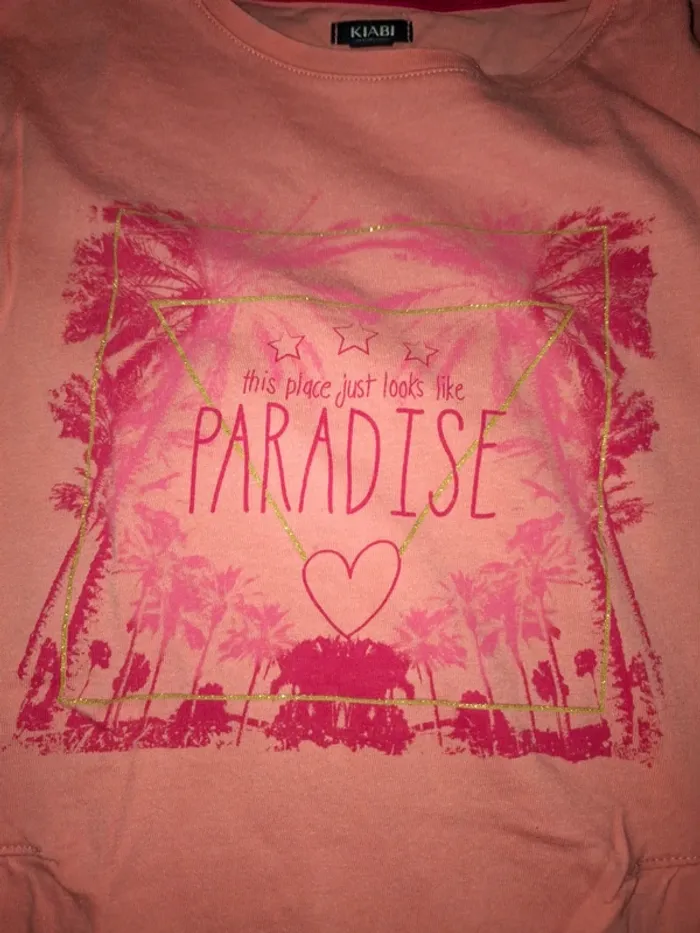 Tunique forme évasé rose corail motif plage en TBE. Taille 8 ans marque Kiabi #8anssevy57