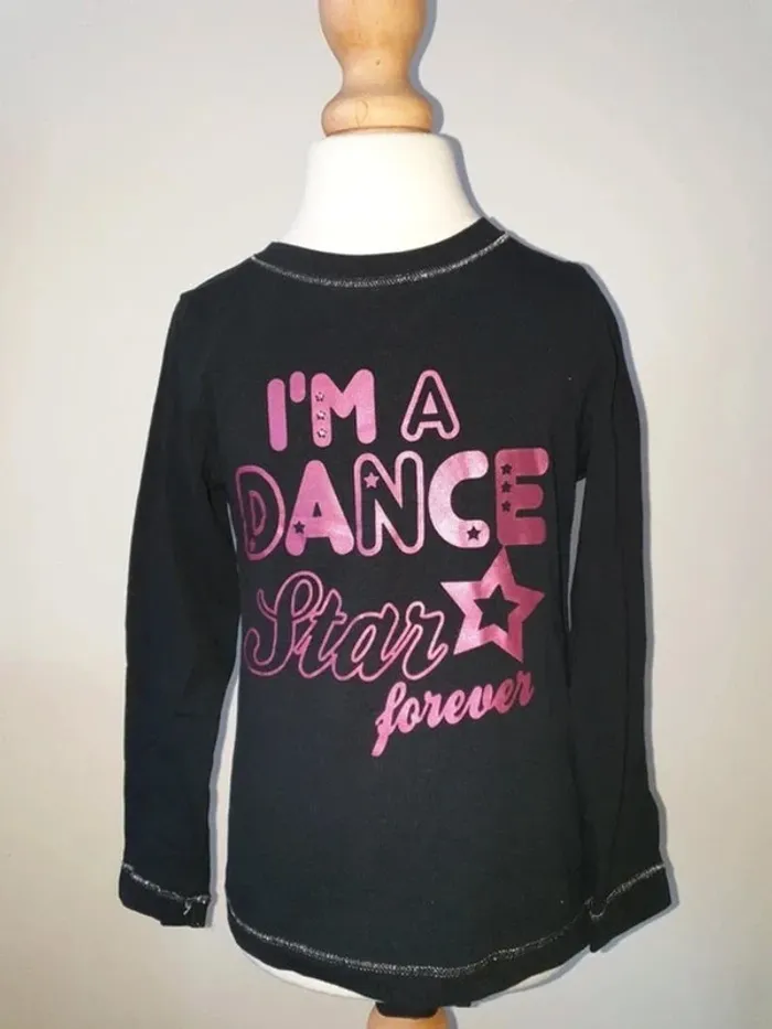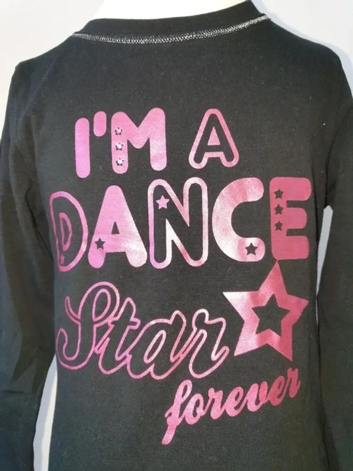 T-shirt manches longues noir avec impression rose pailleté et strass Etat neuf Taille 4 ans Vynille Fraise (Lahalle) #4anssevy57