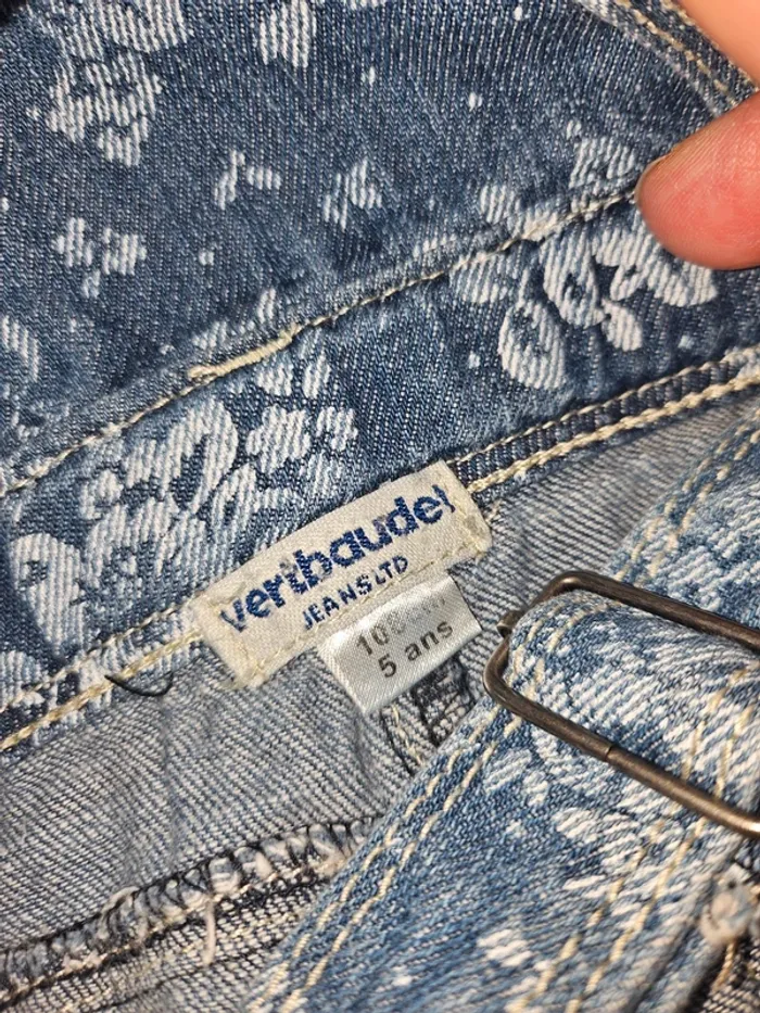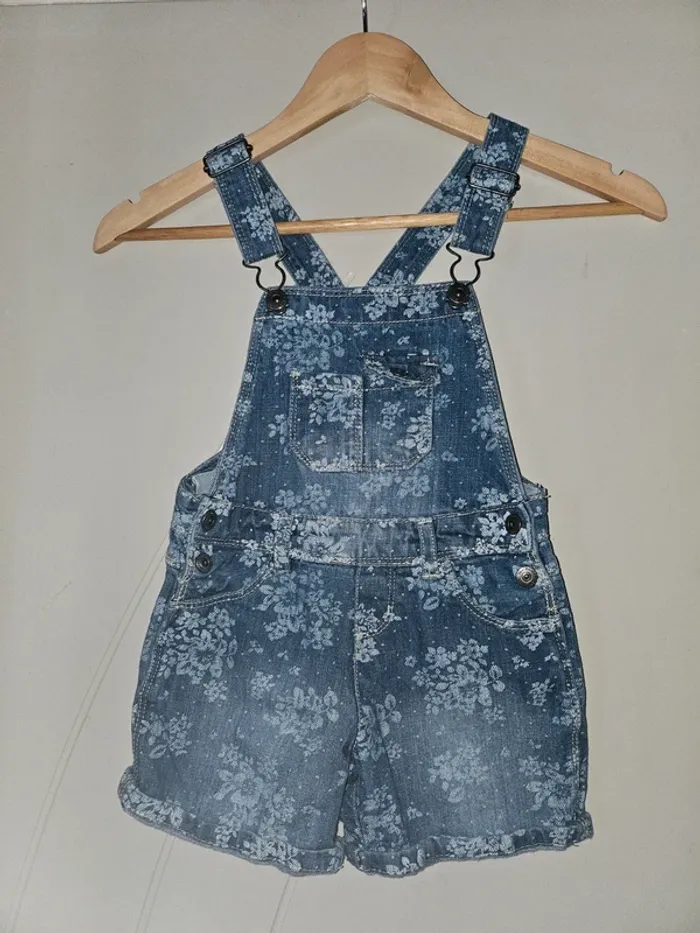 Salopette short fleurie en jean 5 ans Vertbaudet