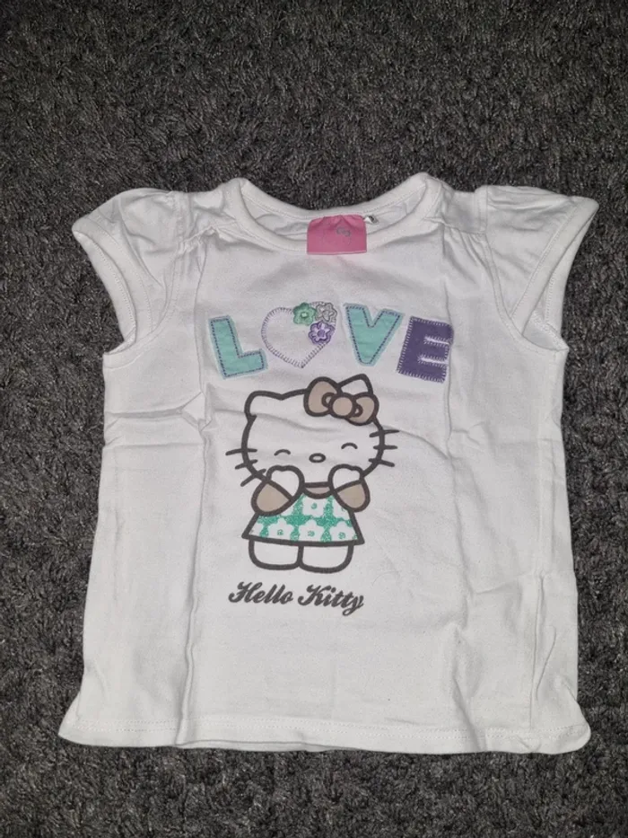 Joli lot pour l'été composé de 3 T-shirts en parfait état et 1 ensemble en TBE (tunique + legging court Creeks) - 2 T-shirts Kiabi 2 ans et 1 T-shirt Hello Kitty 2/3 ans #2anssevy57