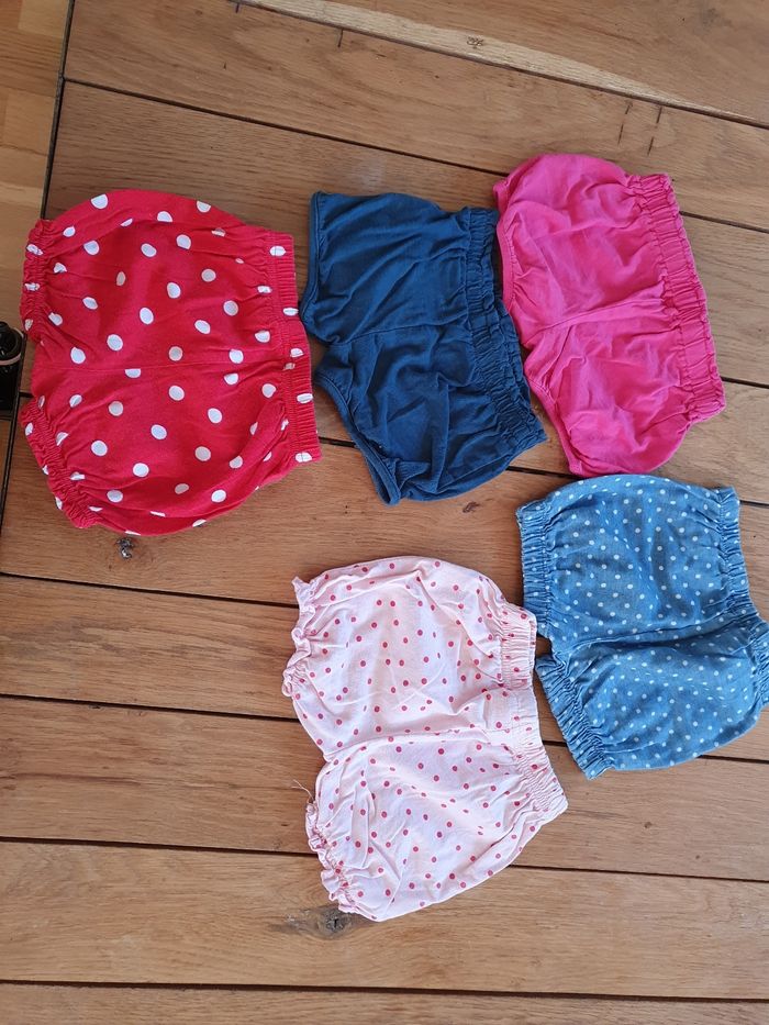 Lot de 5 culottes ou shorts Pour cacher la couche A porter avec un petit collant Marque Vert Baudet. Knot. Kitchou. Coton 9 mois