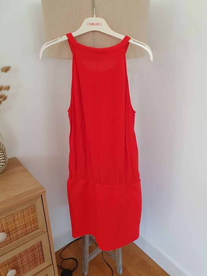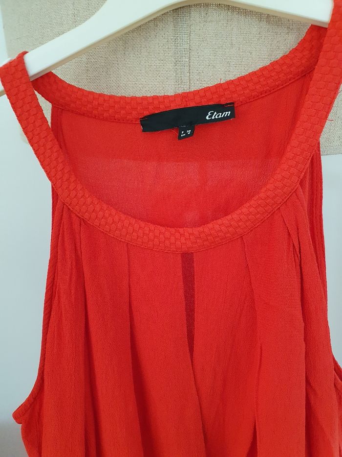 Jolie robe rouge de marque Etam Assez épaisse Haut genre voile légèrement transparent Cou et bas matière plus épaisse
