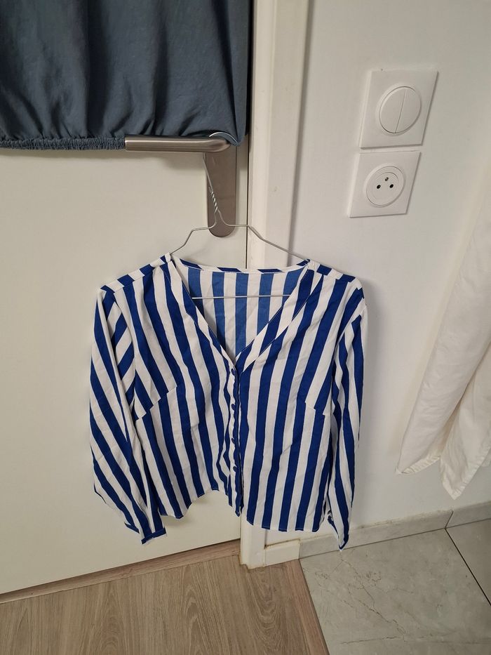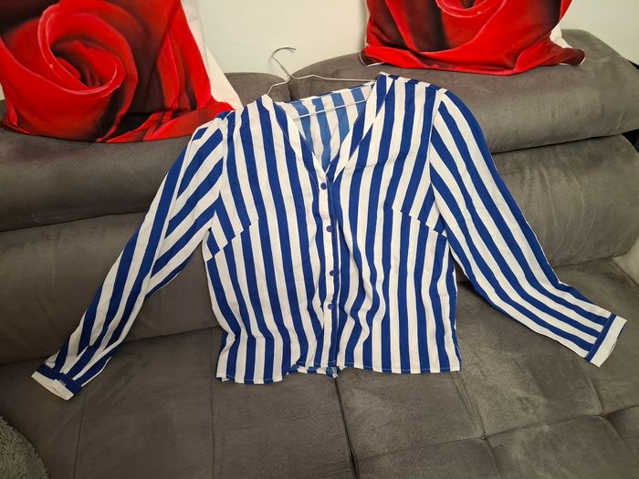 Chemisier a rayure bleu et blanc. S adapte facilement a de nombreuses tenues.