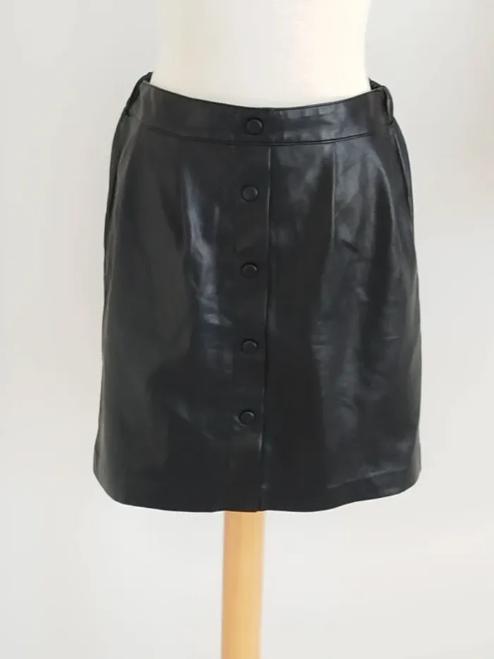 Jupe noire simili cuir Kiabi taille 38 - photo numéro 1