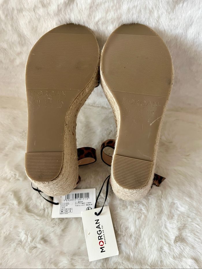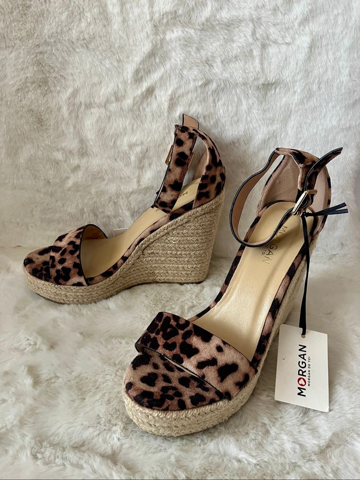 Sandales leopard compensées Morgan pointure 39 talons 12 cm Valeur 59€, voir étiquette