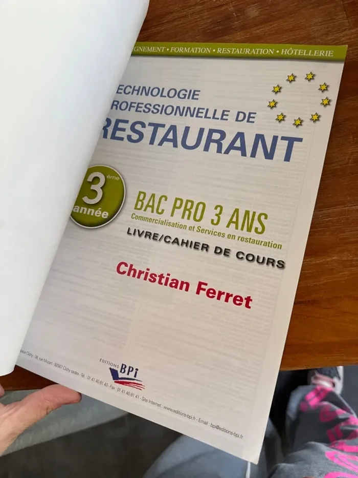 Livre technologie professionnelle de restaurant, troisième année - photo numéro 1