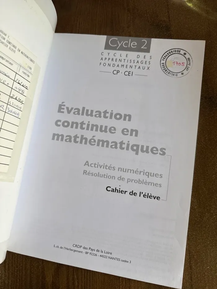 Livre, évaluation, continue en mathématiques, CP CE1