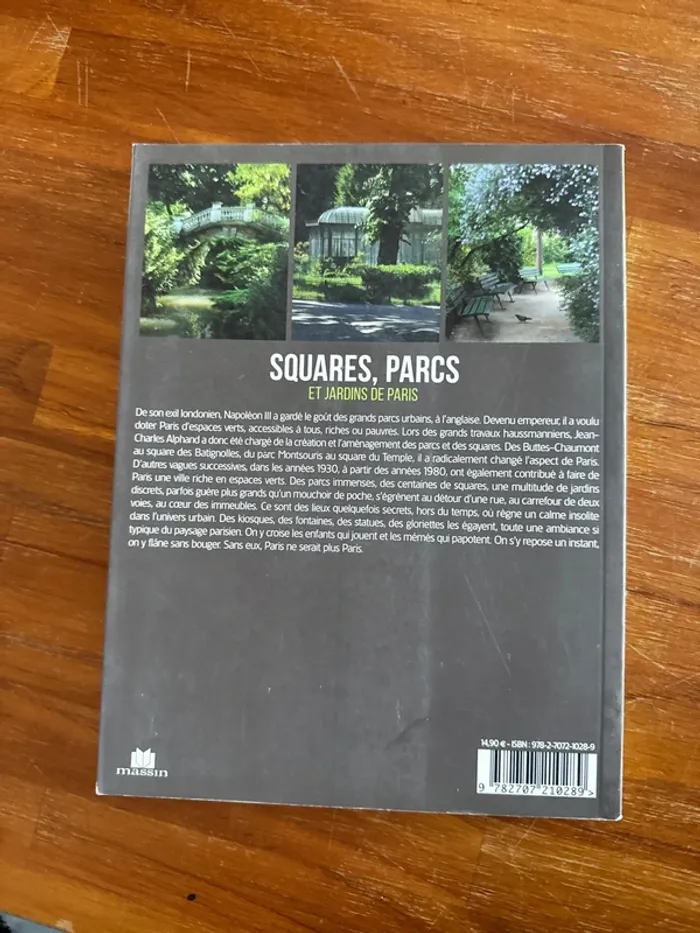 Livre, guide, découverte du patrimoine, square, parc et jardin de Paris