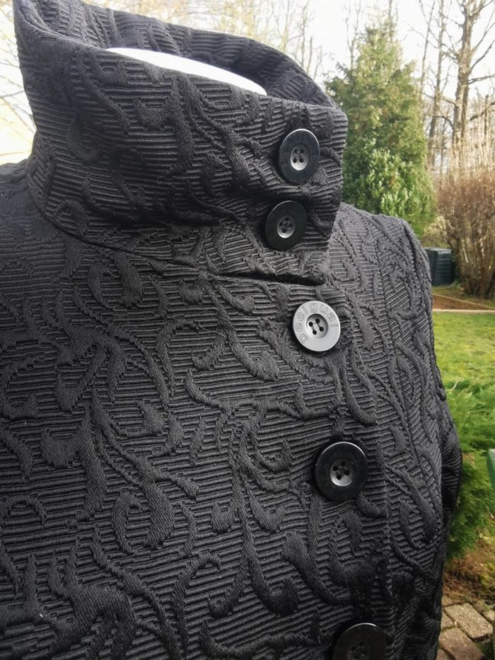 Manteau noir brodé col montant à boutons - photo numéro 3