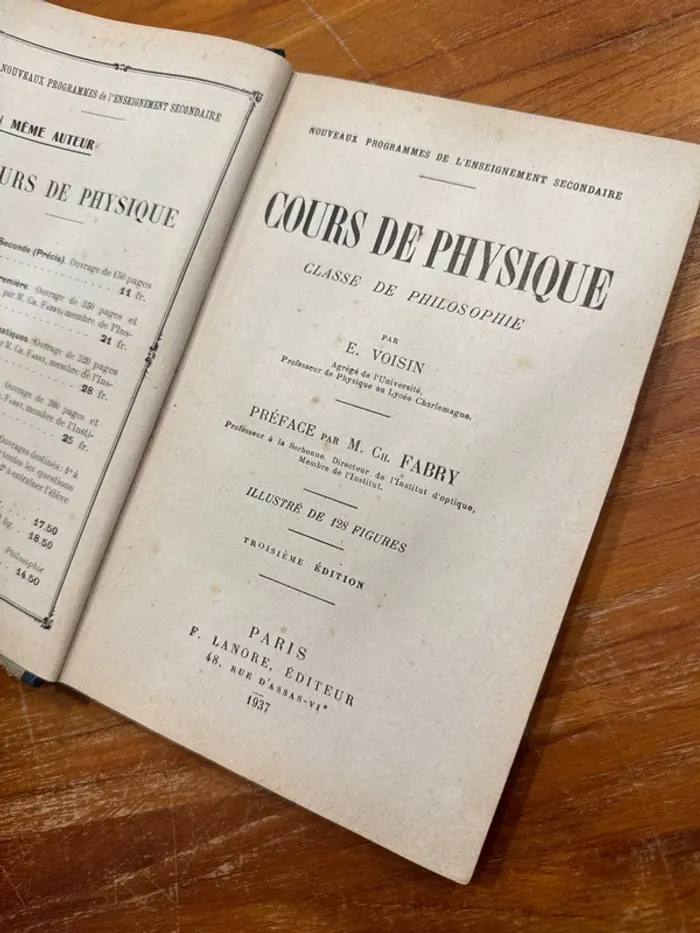 Livre cours de physique, livre ancien