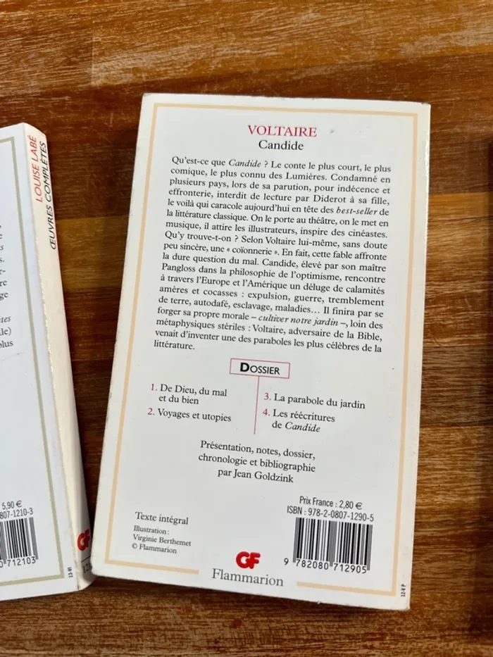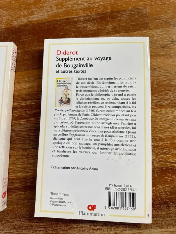 Diderot, supplément au voyage de Bougainville Voltaire, candide Louis Labbé, œuvre complète