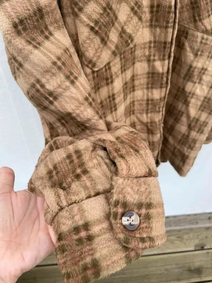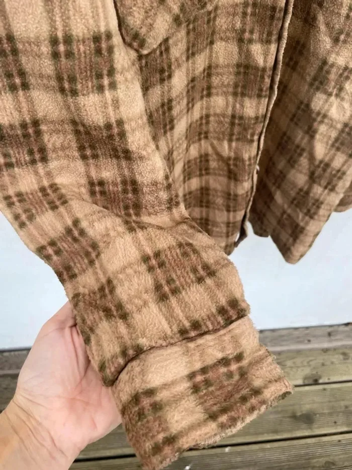 Lumberjack Flannel Plaid Polaire shirt chemise brown beige Mens XXL - photo numéro 10