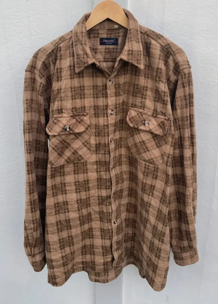 Lumberjack Flannel Plaid Polaire shirt chemise brown beige Mens XXL