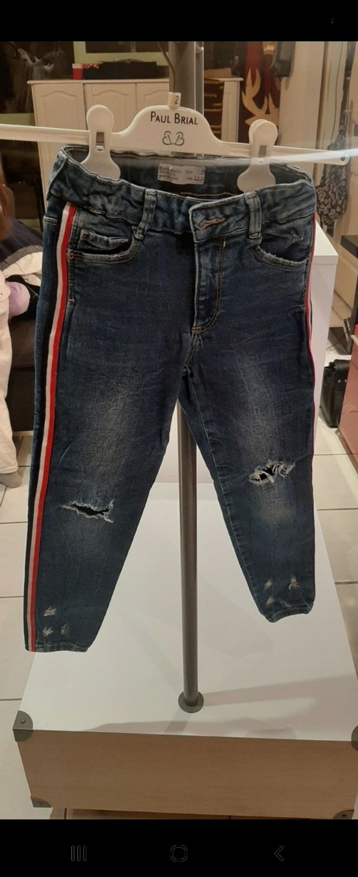 Jean Fille Zara Bandes le long des jambes Troué Taille 7 ans