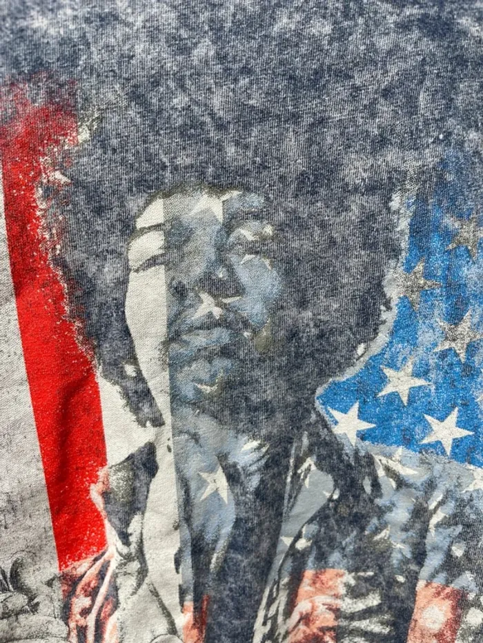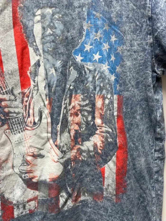 Printed t-shirt Jimi Hendrix guitar rock USA flag - Mens size Small