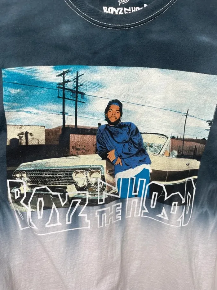 Pièce lavée 🧼 y a plus qu'à porter ! Mesures : - Aisselle à aisselle : 47 cm - Épaule à épaule : 46 cm - Longueur : 68 cm T-shirt rare imprimé Rap / Rap band / US Movie / Boys N the Hood Texture du tissu un peu ondulée Taille : homme M (mais merci de bien vérifier avec les mesures données avant achat, retour non accepté) Couleur : bleu et blanc type tie and dye / dégradé Voir uniquement les hauts de la même taille sur mon profil : #june64990_man_top_M