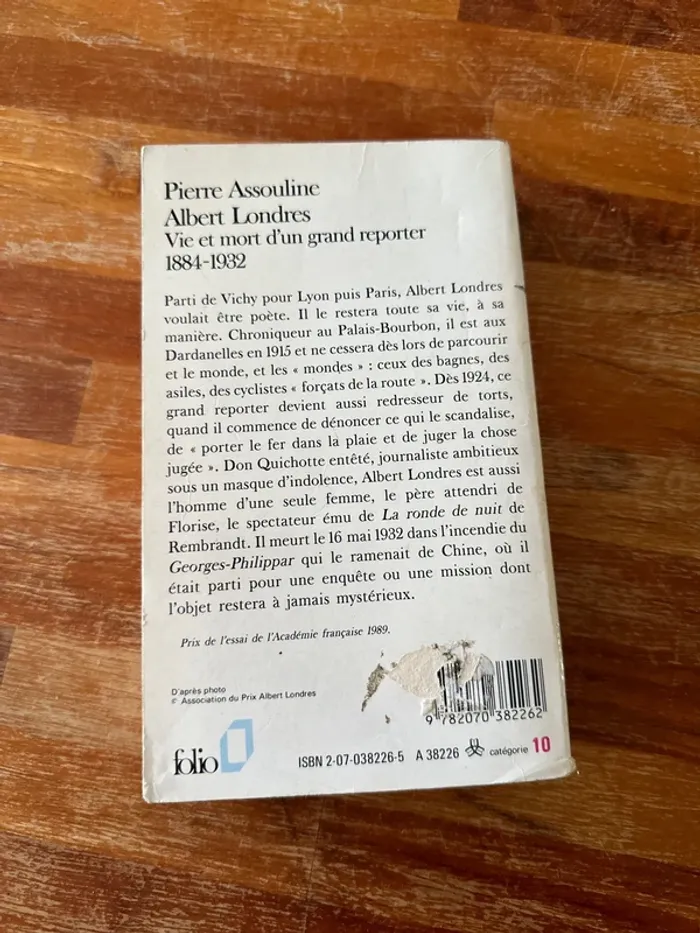 Livre Albert Londres, vie et meurt d’un grand reporter 1884-1932