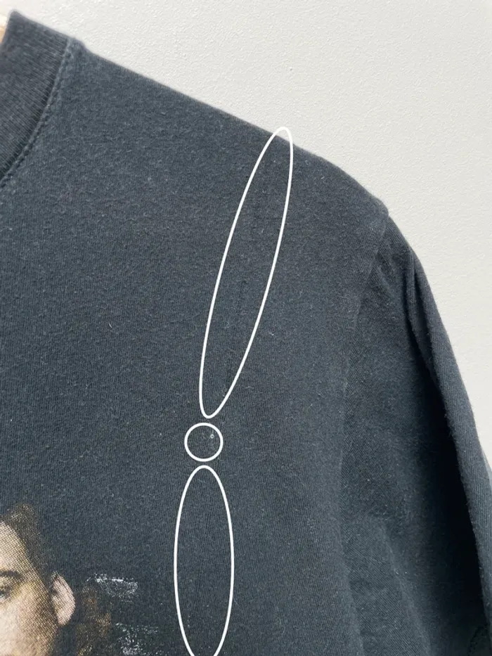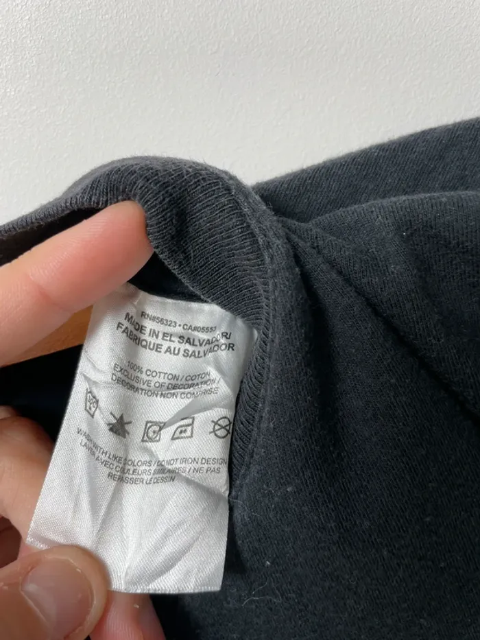 Pièce lavée 🧼 y a plus qu'à porter ! Mesures : - Aisselle à aisselle : 48 cm - Longueur : 66 cm T-shirt imprimé music tour / concert A noter : il y a un bout de scotch noir au niveau du col à l'intérieur Une petite tâche blanche montrée (entourée) Une ligne noire le long du t-shirt (entourée également) Taille : homme S Couleur : noir Voir uniquement les hauts de la même taille sur mon profil : #june64990_man_top_S
