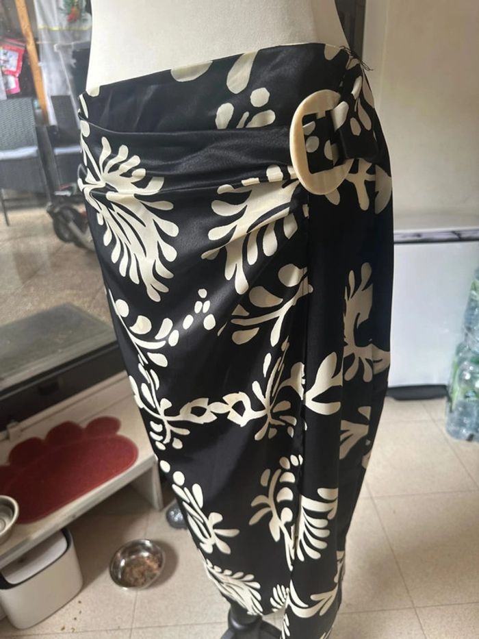 Jupe longue fleurie noire et blanche - Zara - photo numéro 2