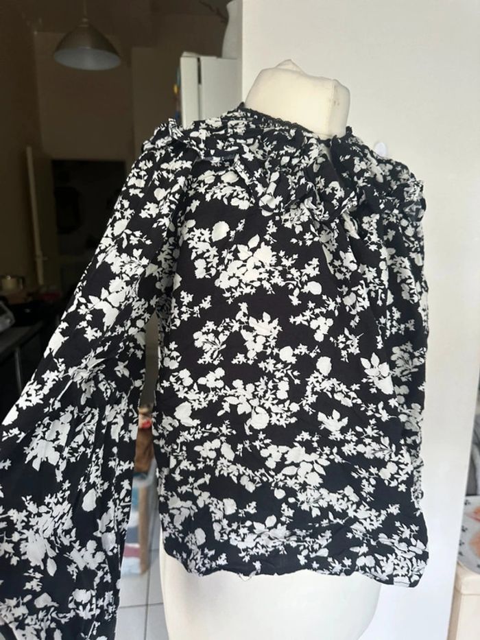 Blouse noire et blanche fleurie - Zara - photo numéro 1