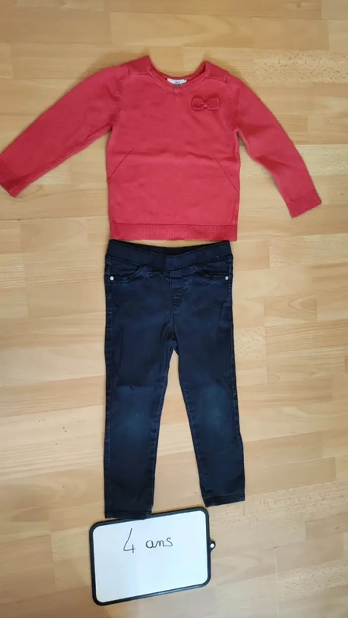 Pantalon jegging noir Okaïdi + pull orange dpam taille 4 ans Peu porté #rosalee4ans