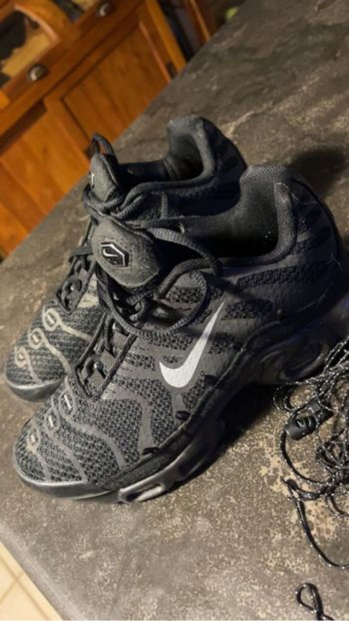 Basket Nike TN air Noir Pointure 38 Taille petite (37) Usure semelle en dessous sur 1la basket pied gauche voir photo Rien de méchant