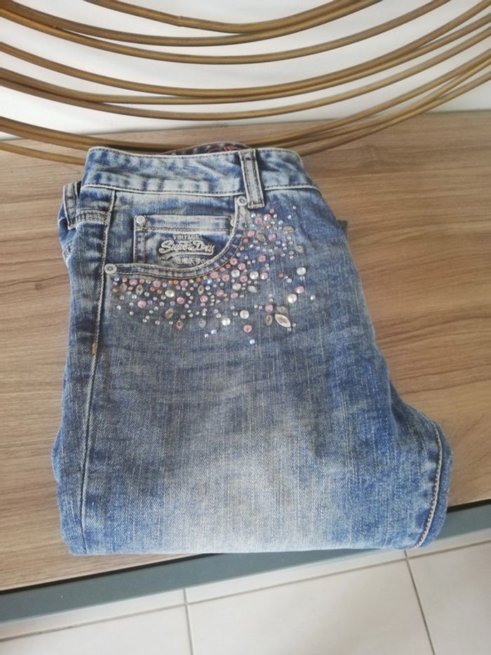 Je vends ce jeans slim de la marque Superdry en très bon état. Strass sur le devant T27 Etiquette à l'arrière très légèrement usée #jeans #jeanssuperdry #superdry #jeanssuperdry27 #jeansastrass
