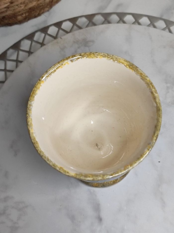 Superbe tasse sur pied en céramique décorée de motifs de chardons bleus à la main avec une signature. Dimensions H 13 x D 8,5 cm