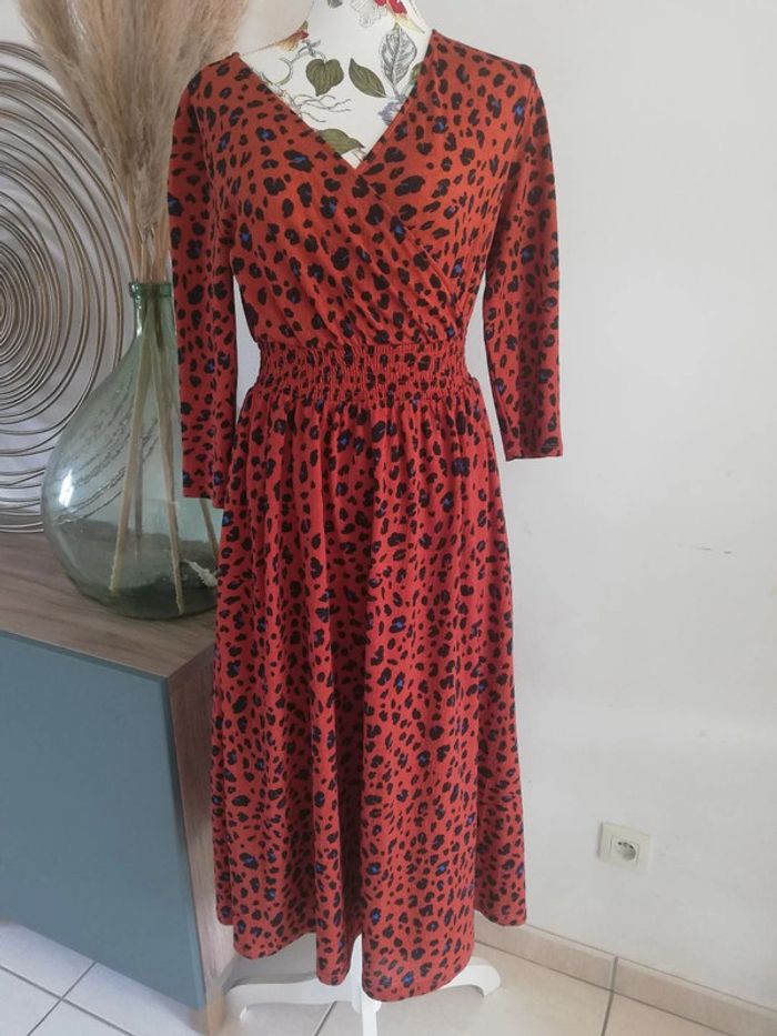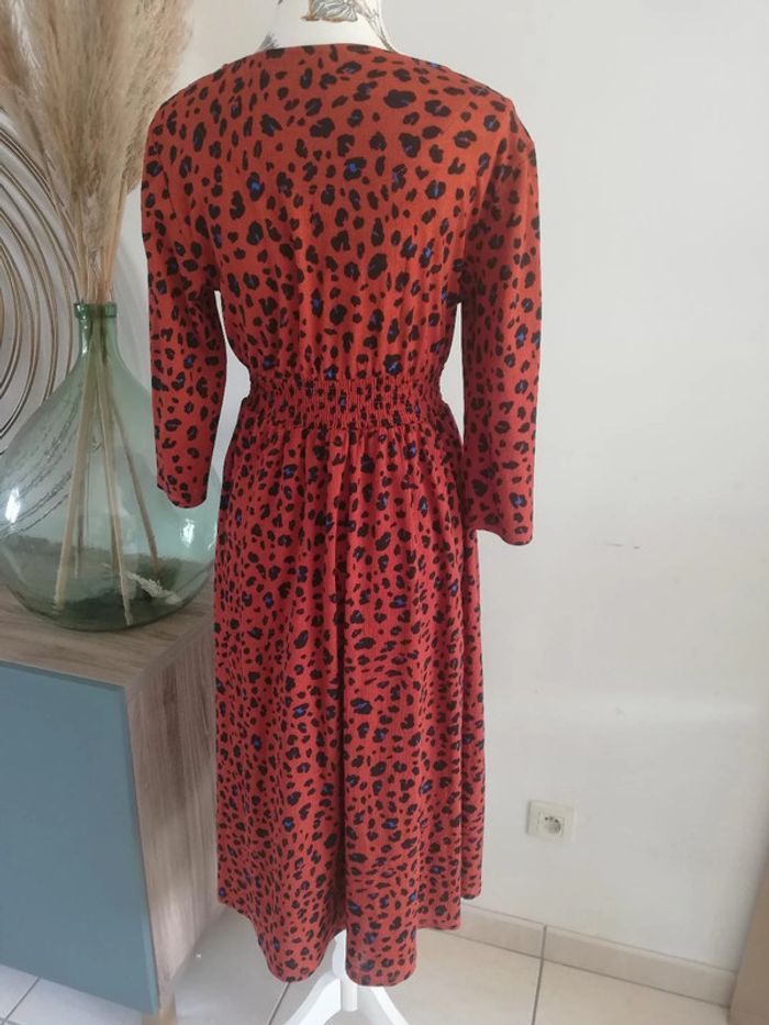 Je vends cette robe de la marque Only en très bon état. Il y a quelques très légères bouloches à peine visibles. Motif léopard Taille 38 Coloris rouille 99% Polyester 1% Elasthanne Longueur 112 cm Largeur aisselle à aisselle 40cm #robeOnly #only #robeonlyleopard #robeleopard #robemancheslongues
