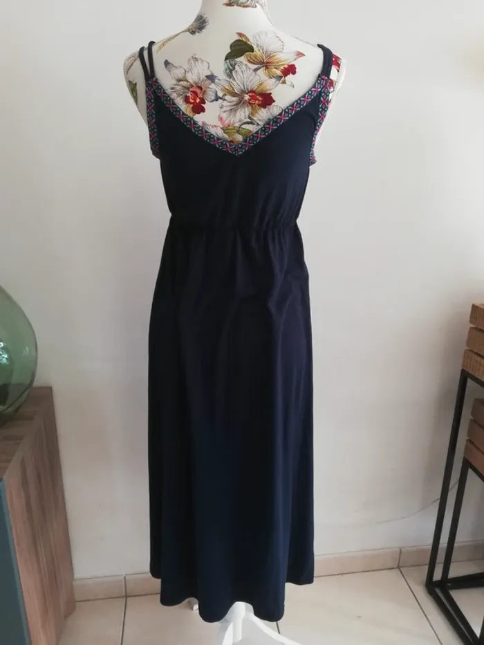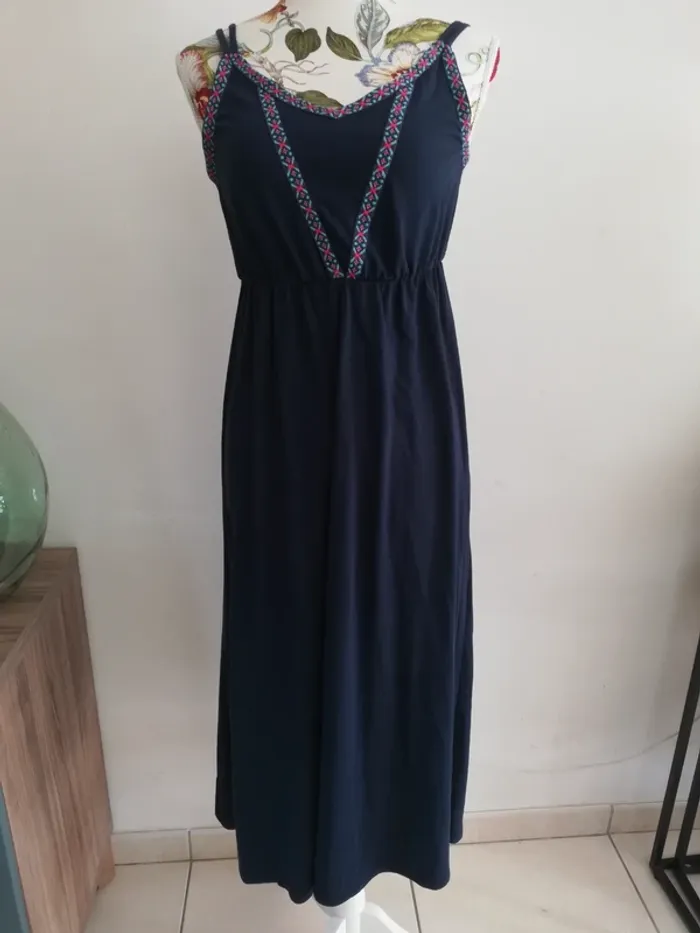Je vends cette robe longue de la marque Promod en bon état. Il y a quelques légères bouloches Coloris bleu marine Taille S 66% polyester 34% viscose Longueur 114 cm #robelonguepromod #promod #promodS #robelongue