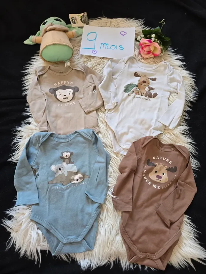 Lot de bodies animaux #vetementsgarcons12moiscecilek0931 Petite tache sur le blanc non detaché