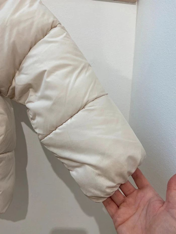 Taille 9/10 ans - 140 cm Très chaud, couleur crème Pas de trace d’usure ou de trou, mais la couleur étant très clair, il y a beaucoup de traces (voir photos), visible surtout de près. N'hésitez pas à faire un lot : #nadmattneufansfille #nadmattdixansfille #zara #doudoune #manteau #blouson