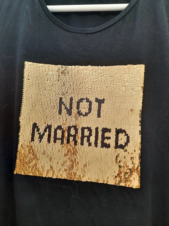 En cliquant sur #nadmattdressing, vous serez redirigé vers mon catalogue et aurez la possibilité de filtrer par taille, état, etc .... Tee-shirt IKKS Taille 36 Idéal pour enterrement vie de jeune fille ou autre Sequins réversible : Married ou Not Married #ikks #icode #mariage #enterrement #mariée #sequins