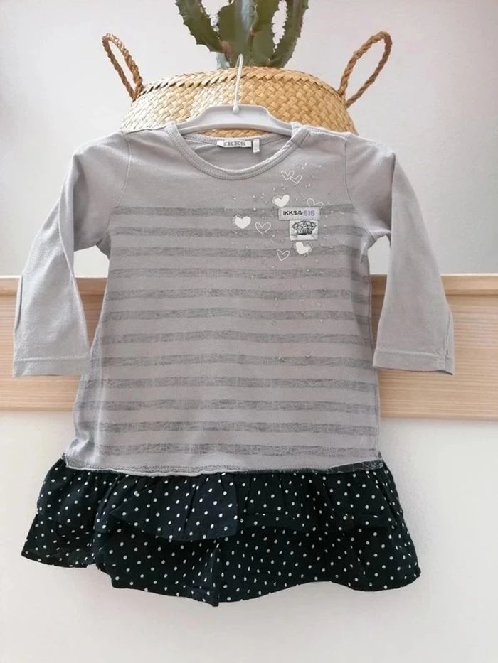 Robe Ikks 12 mois En parfait état Détail très sympa, perle de rocaille devant Pressions sur le col rond N'hésitez pas à faire un lot : #nadmattbebefille #ikks #rock #casual #chemise #hautikks #haut #pois