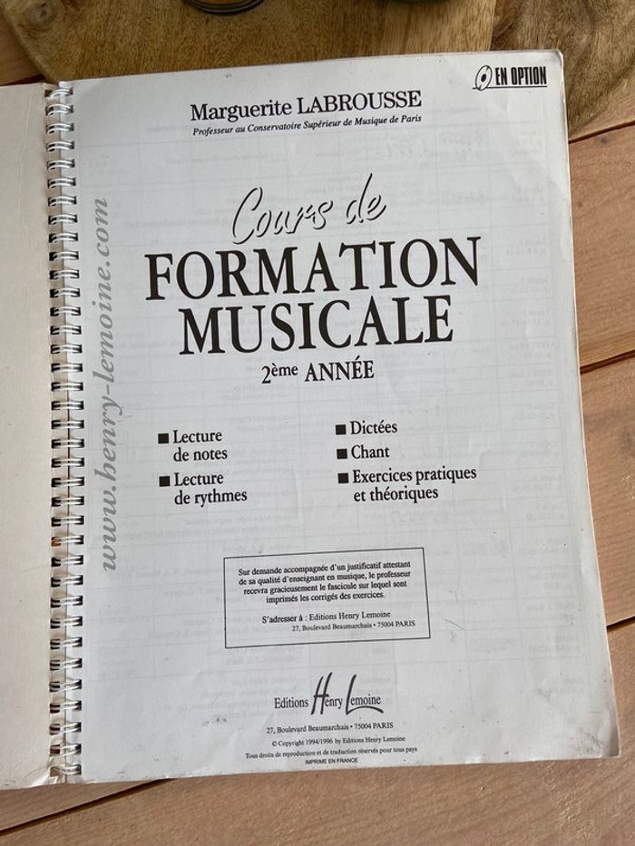Livre pour cours de piano Cours de formation de musique 2ème année Marguerite Labrousse Éditions Henry Lemoine Quelques pages avec trace de crayons (les premières), après il n’a plus été utilisé #piano #cours #solfège