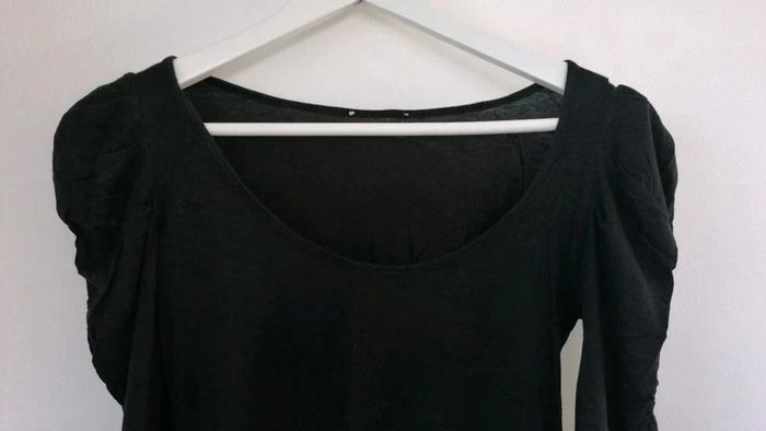 Haut noir, se porte près du corps. Manche froncé sur le haut. En bon état Marque Pimkie mais j'ai coupé l'étiquette N'hésitez pas à faire un lot #nadmattfemme #nadmattfemmeXS #pimkie