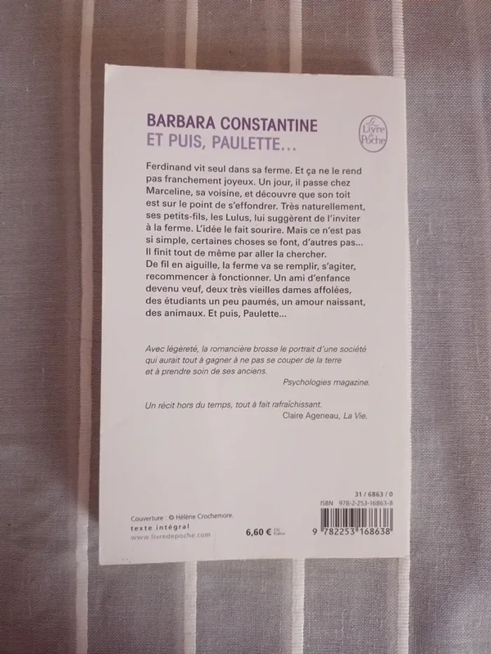 Livre de poche : Barbara, Constantine et.oyus, Paulette... Ce livre est un hymne à s'occuper mieux de nos personnes âgées. On le lit d'une traite tellement il est agréable à lire !