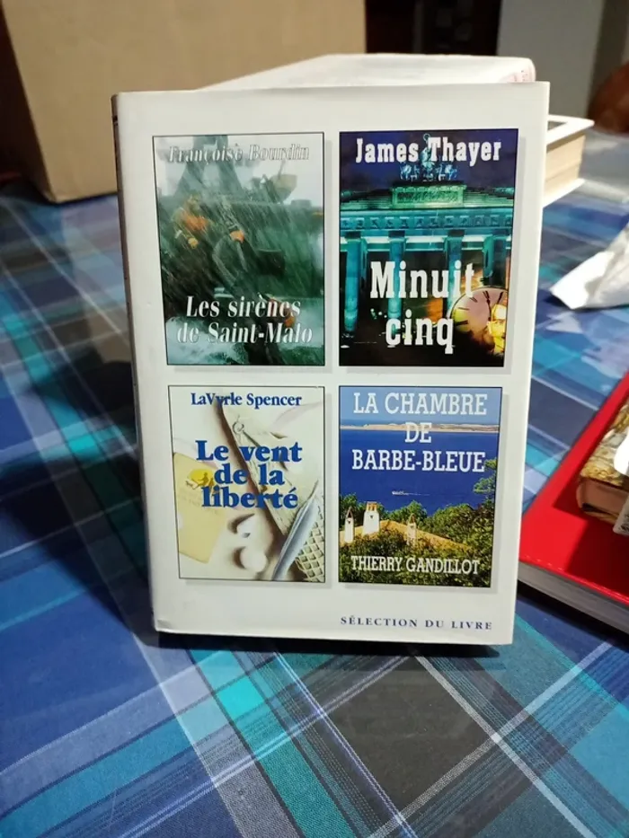 Sélection du Reader,s Digest 4 romans haletants Les sirènes de Saint-Malo de Françoise Bourdin Minuit cinq de James Thayer Le vent de liberté de Lavyrle Spencer La chambre de Barbe bleue de Thierry Gandillot Comme neuf Une fois la jaquette enlevée, magnifique livre pour une belle bibliothèque de style