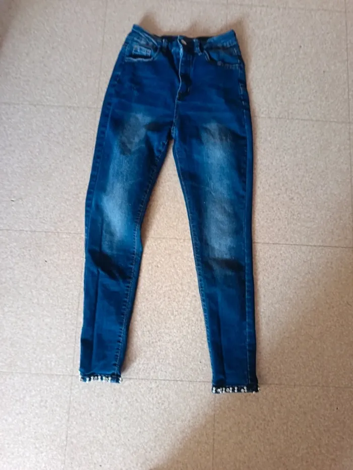 Un jean taille s en bas du pantalon des perles - photo numéro 1