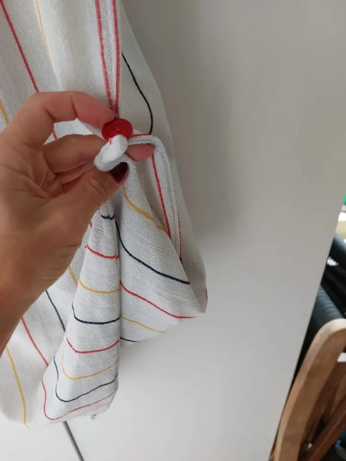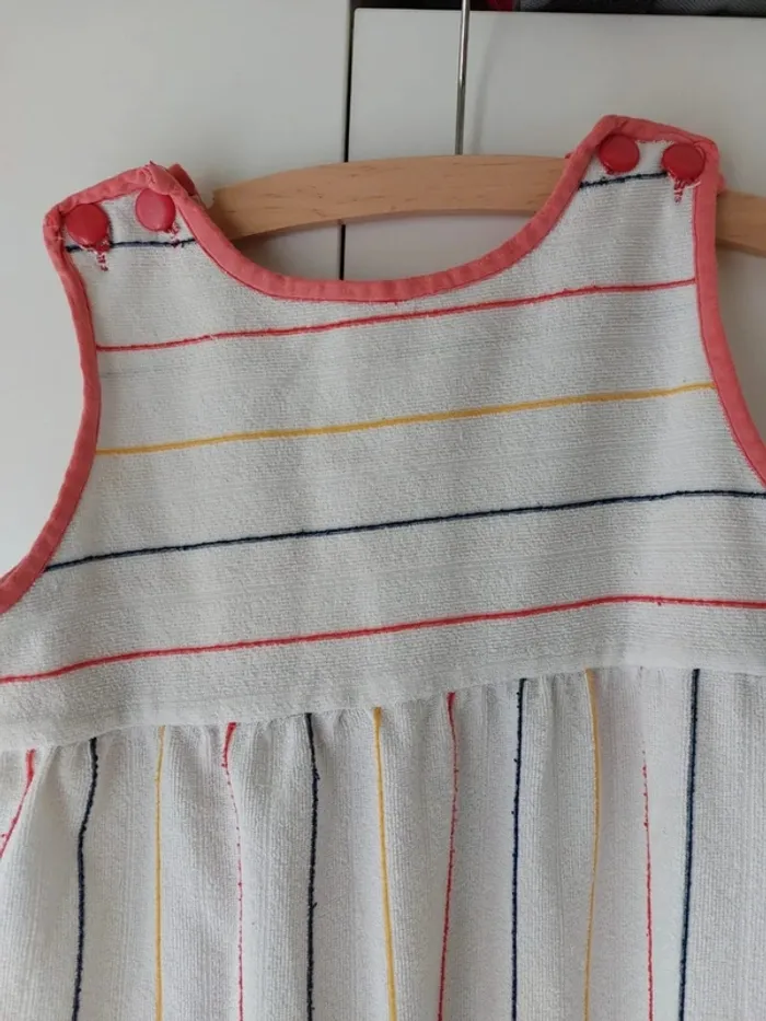 En tissu éponge ultra léger Convient jusqu'à 3 ans Taille : 80 cm sous aisselles Possibilité de la raccourcir à 38 cm sous aisselles Fermeture par boutons épaules Très bon état #mooneygarçon6mois #mooneygarçon12mois #mooneygarçon24mois #mooneygarçon24mois