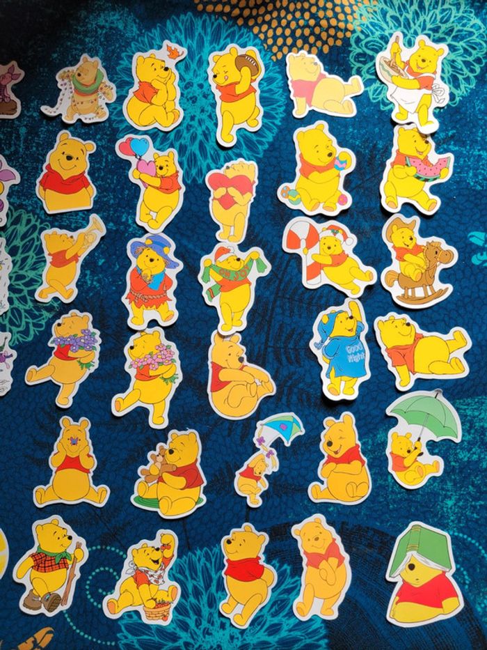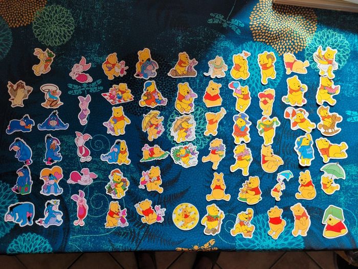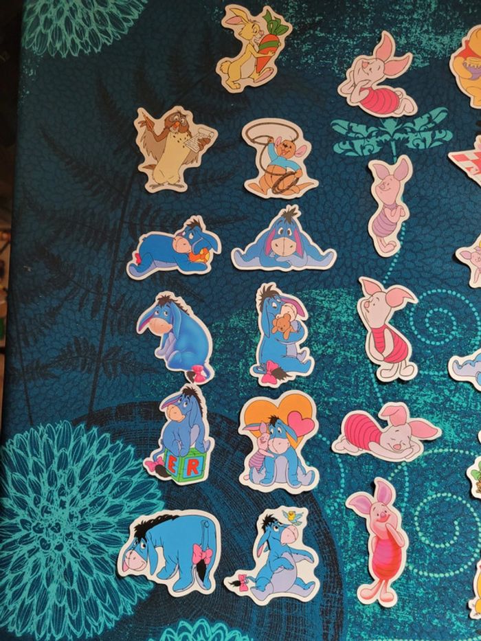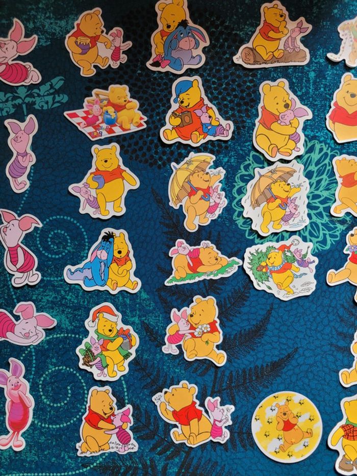 Autocollants 31 winnie 8 Bourriquet 5 porcinet et 16 winnie avec ses amis mais aussi 1 coco lapin 1 petit gourou 1 maître hiboux. En lot ou à l'unité sans soucis 0.30€ pièce ⚠️⚠️ Bien lire l'annonce avant d'acheter
