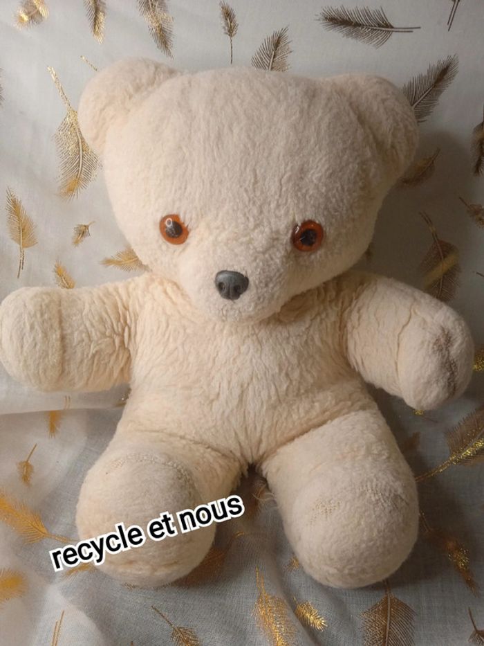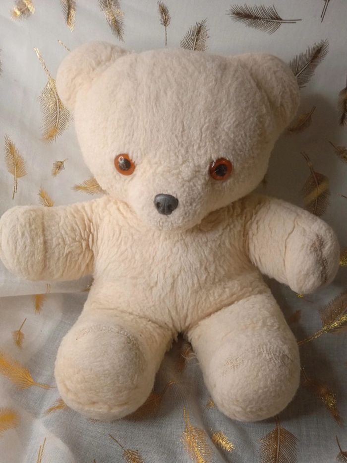 Vintage doudou ours blanc beige - photo numéro 1