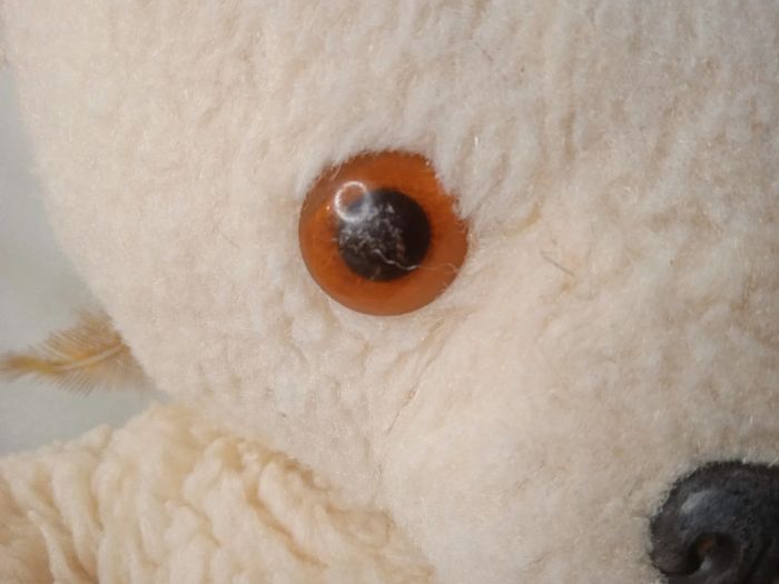 Ancien doudou ours Pas d étiquette yeux couleur marron Des rayures sur les yeux Usure aux niveaux des extrémités (Manque de pelage ) Pas de trous