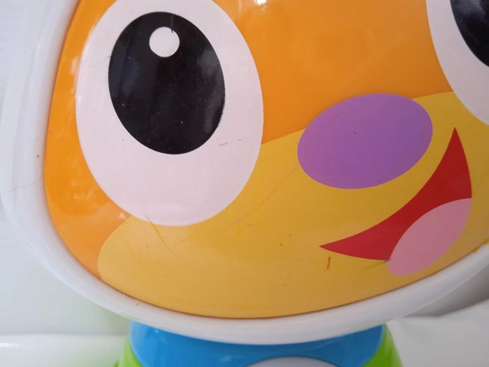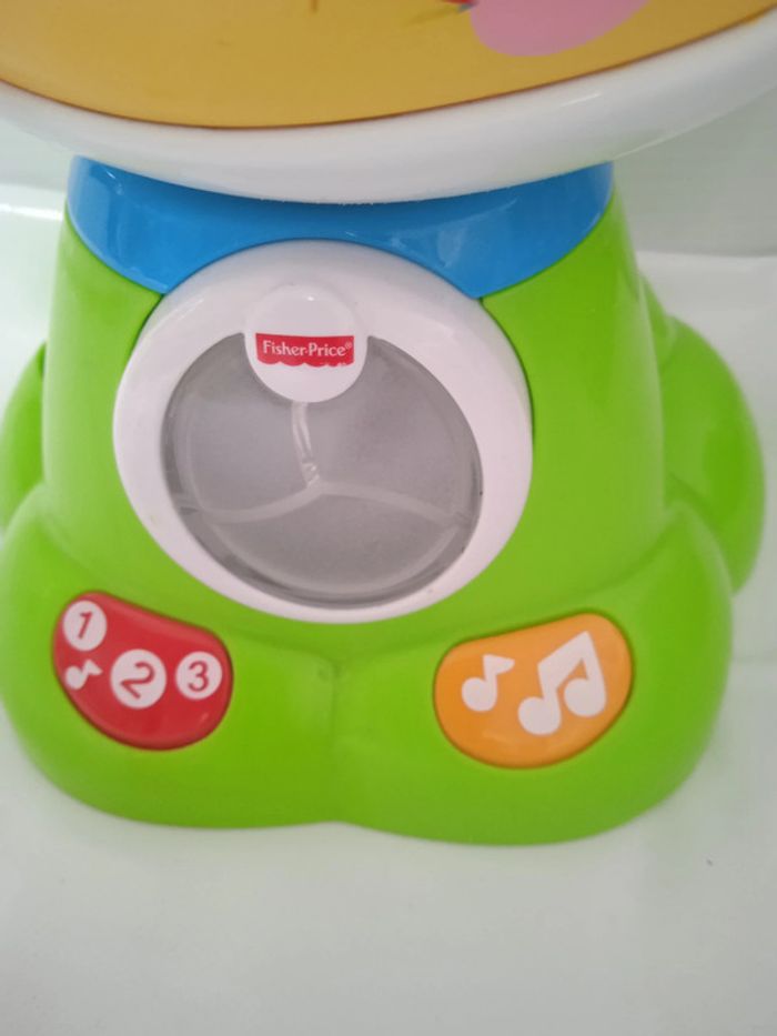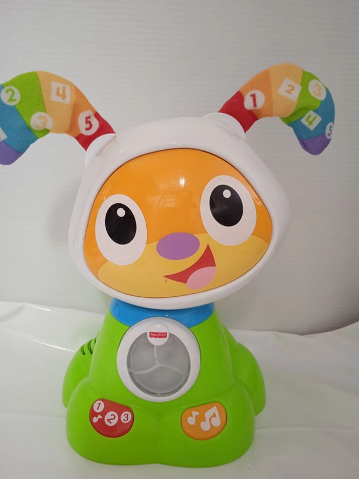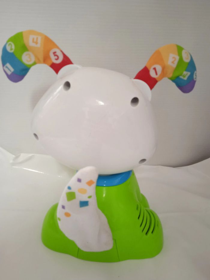 fonctionne avec 4 piles non LR6 fournies. Mesurant 22 cm, Bebo le chien est un compagnon musical à quatre pattes. Son corps est tout vert, sa tête toute ronde et ses oreilles sont aux couleurs arc-en-ciel.