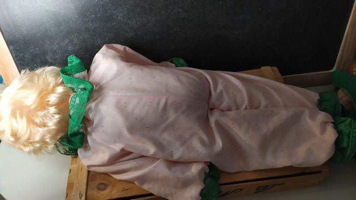 grande poupée clown corps souple en tissus le pyjama ne se retire pas taille environ : 64 cm pas d'étiquette , pas de marque yeux bleu dormeur ** le pantalon aura besoin d'un élastique pour le tenir boutique pro suivez nos arrivages chaque mardi , sur notre page facebook ' recycle et nous ' poupée corps souple cheveux court ( d'origine avec 2 tresses devant