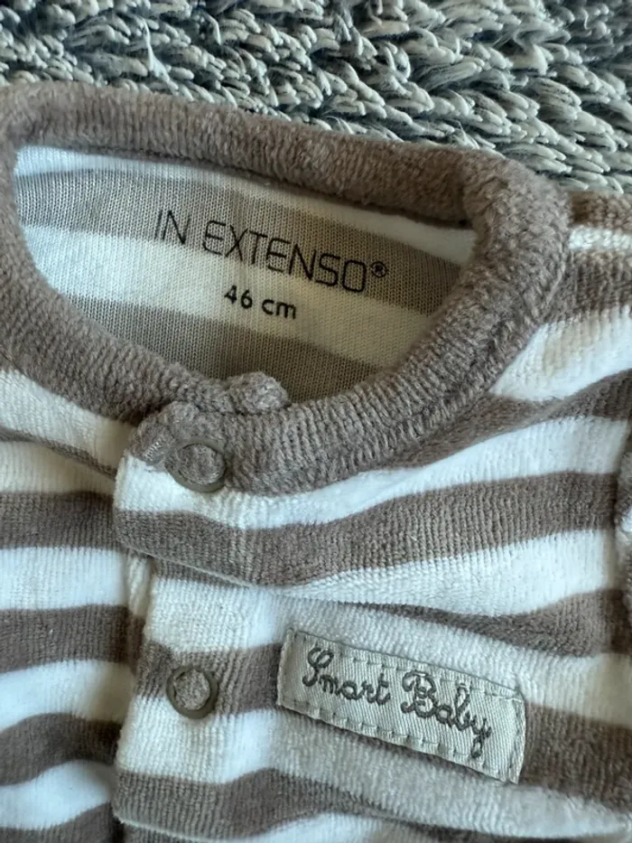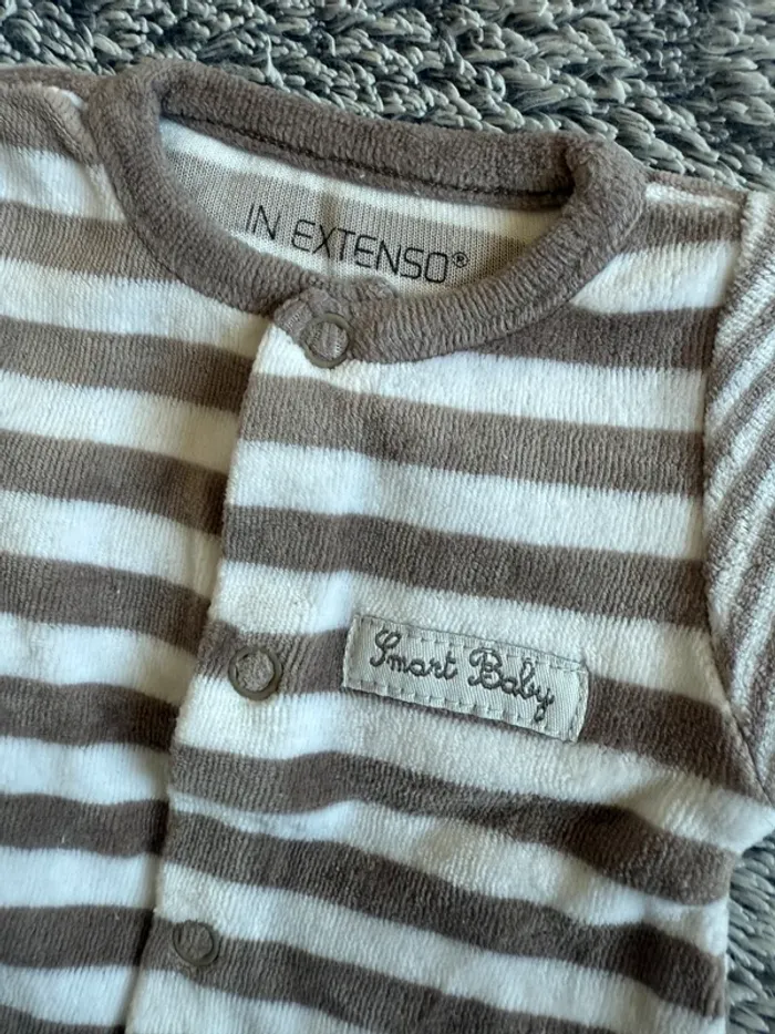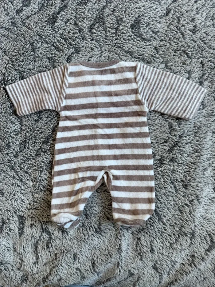 Pyjamas en velours, couleur style marinière marron et blanc cassé donc peut convenir à une fille ou un garçon, NEUF (jamais porté mais a été lavé car mon préma n’était pas si petit que ça), de la marque In Extenso - taille 46 cm #cath_moiprémagarçon #cath_moiprémafille #cath_moinaissancegarçon #cath_moinaissancefille D'autres vêtements et chaussures de marques disponibles pour garçon du prématuré au 12 ans et pour fille du naissance au 8 ans dont Timberland, Bout'chou, Zara, Jacadi, Tape à l'œil, Okaidi, DKNY, Monoprix…
