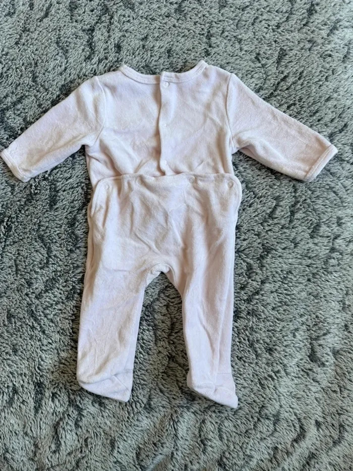 Pyjamas bébé fille en velours, de la marque Verbaudet, rose pâle avec motifs cœurs sur le devant - 3 mois (taille petit) #cath_moi3moisfille D'autres modèles et marques disponibles pour garçon du prématuré au 12 ans et pour fille du naissance au 8 ans dont Timberland, Bout'chou, Zara, Jacadi, Tape à l'œil, Okaidi, DKNY, Monoprix....