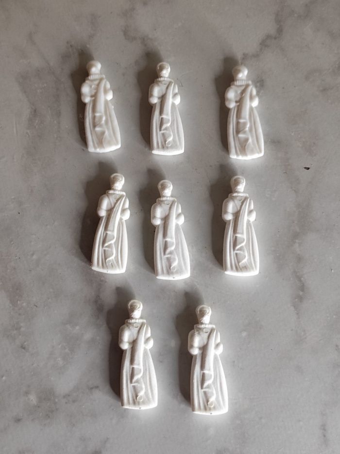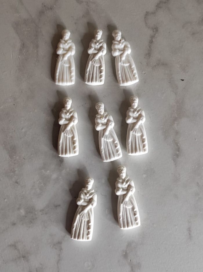 Lot de fèves anciennes en plastique, une collection unique de figurines représentant un personnage traditionnels et provençale 8 pieces disponibles En très bon état