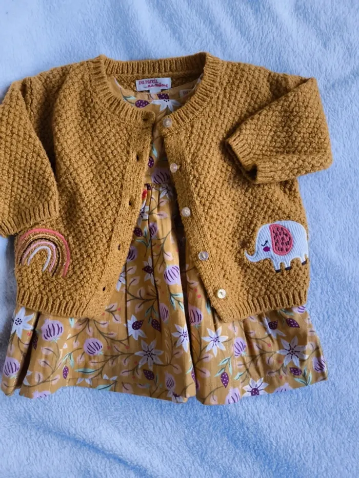 • ensemble • 1 robe ouverture complète dans le dos • 1 gilet • valeur neufs 43 euros • marque dpam • taille 3 mois #margaux5999taille3moisf