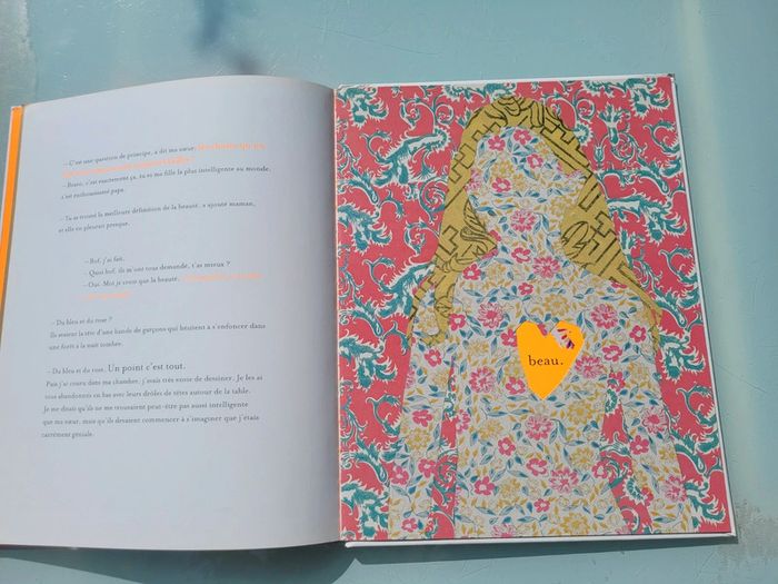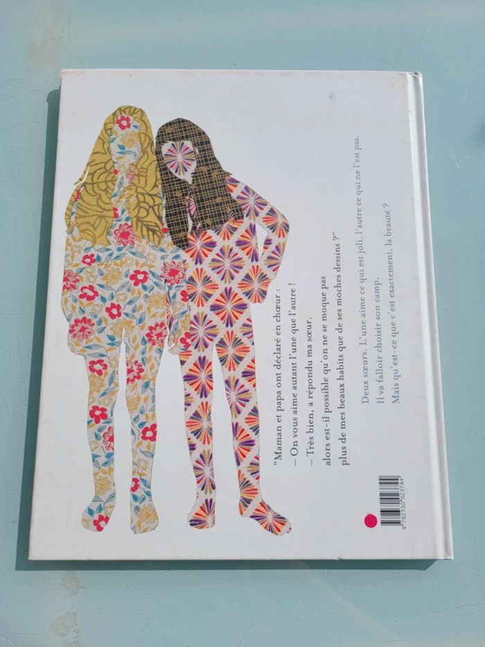 ACTES SUD JEUNESSE L'UNE BELLE, L'AUTRE PAS Deux soeurs. L'une aime ce qui est joli, l'autre pas. L'une est la grande soeur qui critique les dessins de l'autre. Les parents s'en mêlent et finissent par lâcher la vérité à la seconde : ils sont un peu moches, ses dessins ! Pour tout dire, elle aurait mauvais goût... Mais qu'est-ce qu'avoir mauvais goût ? Il paraît que ce n'est pas grave ! Alors, d'accord, la petite soeur instaure la semaine du mauvais goût durant laquelle elle décide de tout : les vêtements portés, la musique écoutée... par toute la famille ! Mais la grande soeur ne peut pas le supporter : pourquoi personne ne respecte son goût pour la beauté ? Et la beauté, d'ailleurs, y aurait-il une définition qui vaille ? Faisant jouer le texte avec des découpes et des superpositions d'imprimés et de couleurs, un album iconoclaste qui interroge, bouscule nos repères. Une ode à la différence, par les auteurs de «La Règle d'or du cache-cache». Nombre de pages : 32 Format : 25,60 x 32,60 Age minimum : 9 ans Très bon état, quelques traces sur la couverture blanche mais très léger et un coin un peu abîmé Mes autres livres enfants : #livreenfantmooglou